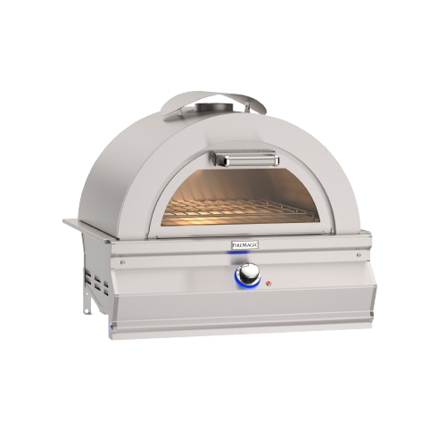 The Fire Magic Aurora Built-In Pizza Oven is a premium outdoor appliance designed to bring the authentic taste of artisan-style pizzas and a variety of baked dishes to your backyard. Crafted with durable 304 stainless steel, this oven not only ensures longevity but also adds a sleek, modern touch to any outdoor kitchen setup. With a thermostatic control that reaches up to 750°F, it offers versatility for baking, roasting, and more. The oven features a ceramic glass viewing window, allowing you to monitor your culinary creations without releasing heat, and an interior light for convenient nighttime cooking. Its flat-opening door, capable of supporting up to 50 lbs, provides easy access to the cooking chamber, enhancing the overall user experience.